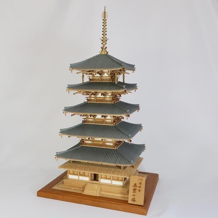 岡本瀧 木製 模型 法隆寺 五重塔 共箱 置物 和風 置物 美術 岡本瀧 木製 模型 法隆寺 五重塔 共箱 置物 和風 置物 美術